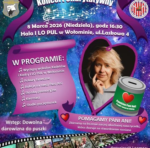 Niedziela 8 marca godzina 14.00. Muzeum Bitwy Warszawskiej 1920 w Ossowie koncert z okazji Dnia Kobiet, godzina 16.30. I LO PUL w Wołominie ul.Laskowa 4, koncert charytatywny „GRAMY dla PANI ANI” Zapraszamy.