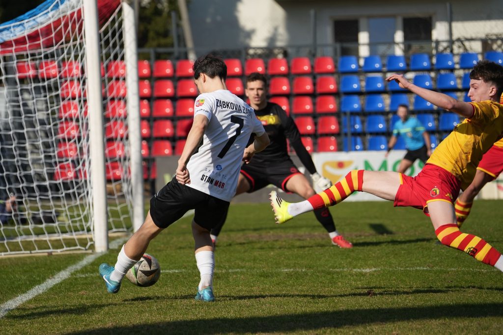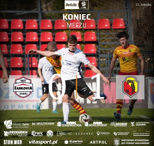 Trzecie spotkanie rundy wiosennej 2026 i niestety trzecia porażka. Dwa wcześniejsze spotkania bardzo trudne w Elblągu i w Sieradzu ewentualne porażki były wkalkulowane, ale nikt nie spodziewał się braku punktów w sobotnim spotkaniu ze słabo notowana drużyną JAGIELLONI Białystok II. Mecz ogólnie na niskim poziomie, a gospodarze z Ząbek nie byli w stanie mimo kilku sytuacji pokonać bramkarza z Białegostoku. Drużyna JAGIELLONI w ciągu 90 minut miała dwa rzuty karne i jeden z nich pod sam koniec meczu wykorzystała i zwyciężyła sensacyjnie 1:0. ZĄBKOVIA Ząbki nadal jest w czołówce na 5 miejscu, ale strata do miejsca barażowego o awans do II ligi niestety coraz dalej
