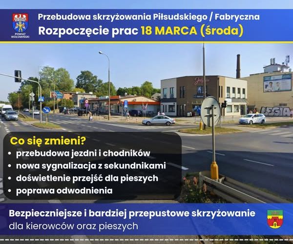 Już w środę rusza przebudowa skrzyżowania ulic Piłsudskiego i Fabrycznej w Markach. Rozpocznie się inwestycja, która ma poprawić bezpieczeństwo i usprawnić ruch w jednym z ważniejszych punktów komunikacyjnych w Miasto Marki. W ramach prac poprawiona zostanie geometria jezdni i chodnika (aby ułatwić prawoskręt w stronę Radzymina), pojawi się nowa sygnalizacja świetlna 𝘇 𝘀𝗲𝗸𝘂𝗻𝗱𝗻𝗶𝗸𝗮𝗺𝗶, doświetlenie przejść dla pieszych oraz poprawione zostanie odwodnienie w rejonie skrzyżowania. 𝗢𝗱 𝘀́𝗿𝗼𝗱𝘆 𝟭𝟴 𝗺𝗮𝗿𝗰𝗮 w rejonie skrzyżowania wprowadzona zostanie czasowa organizacja ruchu, która oznacza utrudnienia dla kierowców. Na krótkim odcinku ul. Fabrycznej przy skrzyżowaniu nie będzie możliwości skrętu: z Piłsudskiego w Fabryczną, z Fabrycznej w Piłsudskiego. Utrudnienia potrwają około 4-6 tygodni. Objazd wyznaczono ulicami Ząbkowską i Lisa-Kuli, a następnie dalej ul. Fabryczną. Dojazd ulicą Fabryczną do targowiska oraz przychodni będzie utrzymany, w tym również ruch pieszych na przejściu w rejonie przystanku autobusowego./AW/
