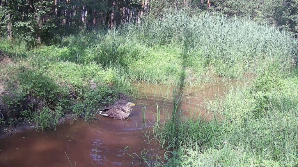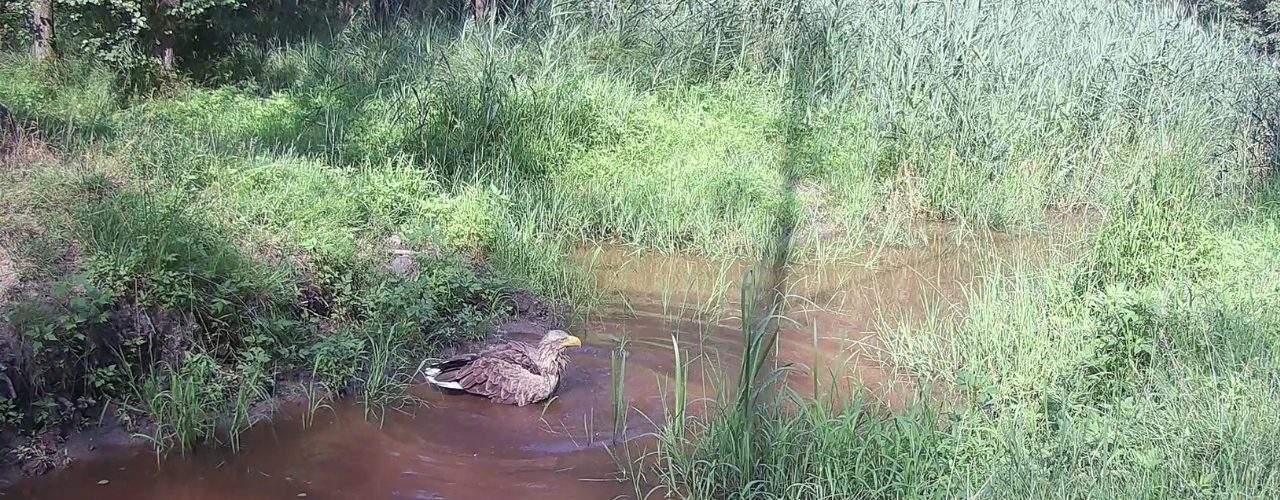 Od czasu do czasu przylatuje do swojego „basenu”. Orzeł Bielik w kąpieli. Zobacz VIDEO /źródło kraina borów i stawów/