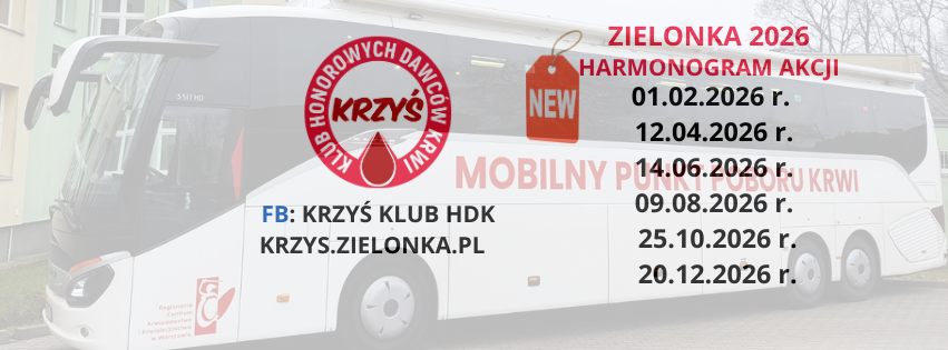 Klub Honorowych Dawców Krwi „Krzyś” Zielonka serdecznie zaprasza na kolejną akcje honorowego krwiodawstwa, która odbędzie się w niedzielę 12 kwietnia w Zielonce (Szkoła Podstawowa nr 2 ul. Powstańców) w godzinach 9.00 – 13.00