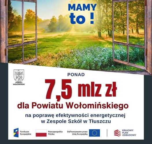 𝗠𝗔𝗠𝗬 𝗧𝗢! 𝗢𝗚𝗥𝗢𝗠𝗡𝗘 𝗗𝗢𝗙𝗜𝗡𝗔𝗡𝗦𝗢𝗪𝗔𝗡𝗜𝗘 𝗗𝗟𝗔 𝗦𝗭𝗞𝗢Ł𝗬 𝗪 𝗧Ł𝗨𝗦𝗭𝗖𝗭𝗨! Powiat Wołomiński pozyskał aż 𝟳,𝟱 𝗺𝗹𝗻 𝘇ł dofinansowania na realizację projektu: „𝗣𝗼𝗽𝗿𝗮𝘄𝗮 𝗲𝗳𝗲𝗸𝘁𝘆𝘄𝗻𝗼𝘀́𝗰𝗶 𝗲𝗻𝗲𝗿𝗴𝗲𝘁𝘆𝗰𝘇𝗻𝗲𝗷 w Zespół Szkół imienia Krzysztofa Kamila Baczyńskiego w Tłuszczu. To inwestycja o łącznej wartości ponad 9,2 mln zł, realizowana w ramach Krajowego Planu Odbudowy (#KPO) Fundusze Europejskie.
